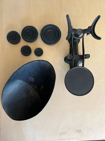 Black cast iron steel counter top scale. Other scales available. Cash only, no shipping, you pick up. Call or text , I don’t respond to emails. Mike