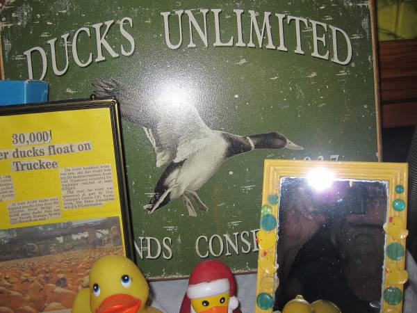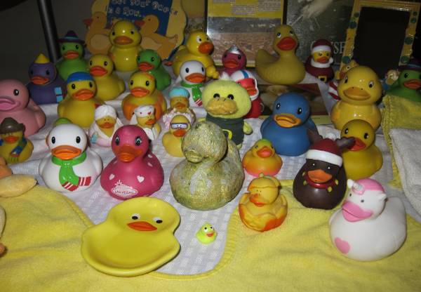 Sooo many ducks, doctors, nurses, unicorns and soccer player. Porcelain soap dish and hand towels, also a duck bathmat. Truckee River framed duck race, Oregon mascot plush duck, painting and skiers, Las Vegas duck and a gold painted duck.