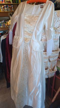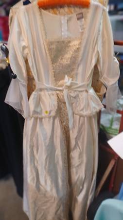 PIRATES OF THE CARIBBEAN ELIZABETH SWAN DRESS-NO SIZE SHOWN ABOUT SIZE 12 $25, RENAISSANCE/HIPPY STYLE HAND MADE DRESS -12 $20, CAPES, CLOWN TYPE DRESS, SHREDDED T-SHIRT. VEST. ALL IN VERY GOOD...
