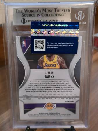 2019-2020 Panini Prizm Prizms Choice Tiger Stripe #129 Lebron James graded in a Beckett Gem Mint 9.5. $1000