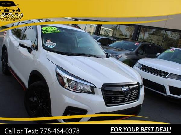Trim: Sport suv Mileage: 80k miles Exterior Color: Crystal White Pearl Interior Color: Gray Engine: 2.5L 4 Cylinders Drive: awd Transmission: Automatic VIN: JF2SKARC3LH594337 Seller Comments: Extremely adaptable, our One Owner, Accident Free 2020 Subaru Forester Sport AWD in Crystal White Pearl has essential features for adventurous owners! Powered by a 2.5 Liter BOXER 4 Cylinder offering 182hp connected to a paddle-shifted CVT.This All Wheel Drive SUV also attacks trails with dual-function X-Mode and hill-descent control, scoring nearly 33mpg on the highway.Versatile and stylish, our Forester's design welcomes LED lighting, fog lamps, a panoramic sunroof, bold alloy wheels, roof rails, orange/Crystal Black Silica trim, and orange-accented under-guards. Our Sport cabin gives you special treatment with heated cloth front seats, 10-way power for the driver, an orange-stitched leather steering wheel, automatic climate control, keyless access, pushbutton ignition, remote start, and exclusive Starlink infotainment technology.It works with a 6.5-inch touchscreen, WiFi compatibility, voice command, Apple CarPlay/Android Auto, Bluetooth, and a six-speaker sound system for superior digital advantages. Confidence comes standard from Subaru with a rearview camera, tire pressure monitoring, stability/traction control, and intelligent Eyesight systems, including automatic braking, adaptive cruise control, lane-keeping assistance, and more.With impressive cargo capacity and a sure-footed stance, this Forester Sport is a functional and fantastic choice! Save this Page and Call for Availability.We Know You Will Enjoy Your West Coast Auto Sales Center Test Drive Towards Ownership!