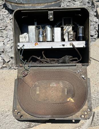 Wards Airline Portable Tube Radio from the 1940s Rare suitcase-style design with front and back enclosures Condition unknown as power cord needs replaced