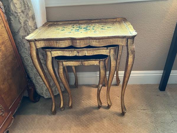 Set of three vintage gold stacking tables. $129 firm