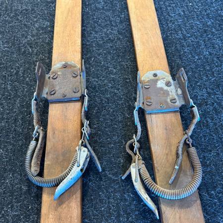 Vintage Clemens Wooden Skis with Metal Bindings - furniture - by...