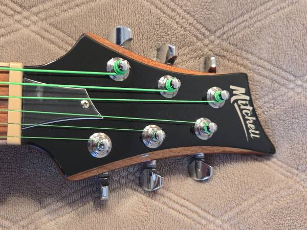 Featuring a thin profile, mahogany body with a flamed maple top in Aqua Burst with a maple binding. MS450 has a pair of Alnico 5 paraffin dipped Humbucker pickups. Separate volume controls with push/pull allow blending as well as coil split for each Humbucker pickup. Use the 3-way switch to select which Humbucker (or both) to create your tone. The 22 frets have been leveled; the sharp edges have been filed smooth. The frets have also been polished. Nice low action with intonation set with a strobe tuner.