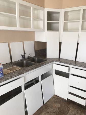 Cabinet refinishing Stain/paint. wallpaper removal.