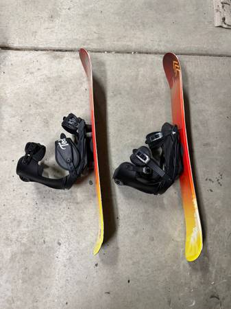 The ski blades are like new. They were bought as a gift a couple of years ago and I’ve only used them 5 times. Bindings take snowboard boots
