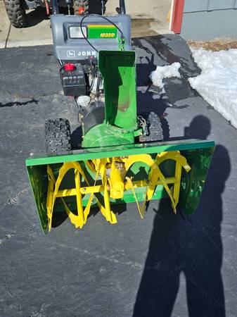 John Deere 1032D snowblower. 32 inch bucket. 10 HP Tecumseh engine, electric start,new carburetor, fuel tank,fuel line. Starts and runs well but will stall after running a while. Not sure why. It does start right back up but will eventually stall again. Probably a fuel issue. Good snowblower for someone who wants to figure it out.