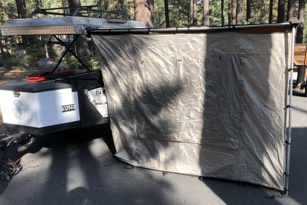 Off road adventure camping trailer. Located in Truckee. 3,000 pound rated. Fully functional electrical pop-top at the push of a button. First of its kind in the industry and only 4 made. Purchased from the original designer/owner. Hassel free design. Fully lockable at all four corners with pad locks. 5 gallon per minute Triton water heater. Two 6-volt Trojan batteries that provide 12 volts of power at 500-amp hours. DC powered water pump. LED lighting. Electric trailer brakes. 18 gallons of insulated water storage. 10 gal per minute water pump. Fold up table with double sink. Two 2.5 gallon propane tanks. Two 1.5 gallon Roto pax gas tanks. General Grabber ATX 265-70-17 tires on 17" Procomp wheels. Roof rack to transport bikes, paddleboards, or whatever. Swing away spare time carrier. 8'x6.5' ARB Touring awning with zip on tent. Sleeps (2) comfortably. Sets up easily. Three-way articulating hitch. Originally retailed for $25,000. Selling for $16,000. Cash or wire transfer only. No trades, and I will not respond to nonsense. I will NOT deliver to you. If the answer is in the listing, do not ask me the same question in a text. Call 5 three zero - 60 eight - 2 three 23 if seriously interested. Leave a message if I do not answer. Do not text me or waste my time. I will not respond to spam or BS.