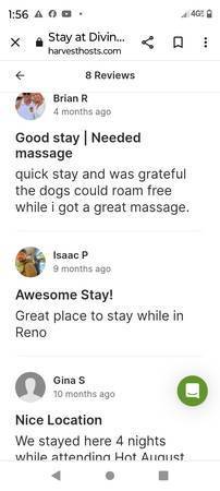 Find reviews on Harvest Host, and Happy cow: look us up under Divine Grace Retreats Reno Nevada 775-460-3969.