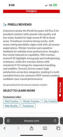 Used Pirelli Scorpion AS Plus 3. Great shape tread is at 10/30 so pretty much brand new . asking $500